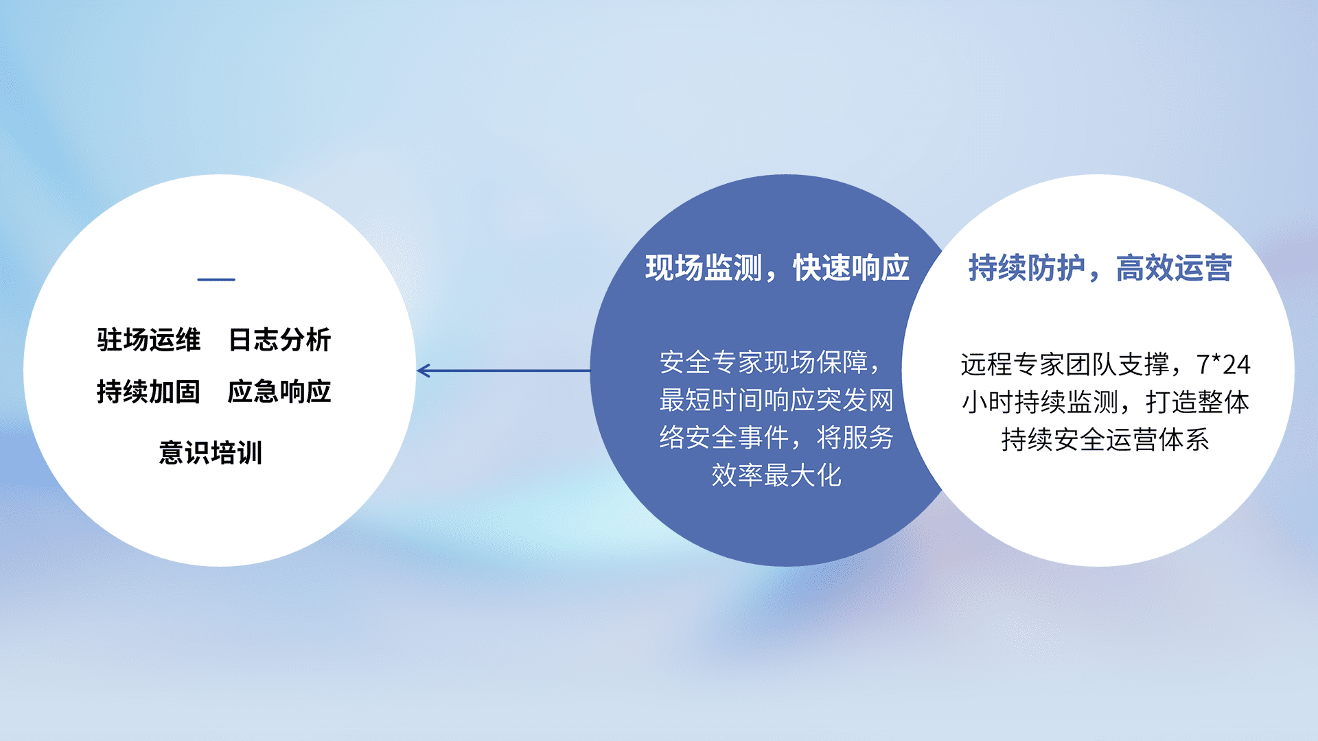 针对客户行业特性,,,,以专业的安全服务+多厂商联合解决方案提供专属的一站式安全管理服务,,帮助客户全面感知网络空间威胁,,基于识别、、检测、、、分析、、、防护、、监测、、响应的服务理论模型,,,,从方案咨询、、、、集成交付、、、、评估验证、、优化加固、、、、运维运营,,致力于为客户提供完整的闭环管理式安全服务。。以实战经验为客户打造高抵御风险的安全体系,,帮助客户发现威胁、、对抗威胁、、、处置威胁,,,,不断积累安全对抗能力,,,持续保障数字化安全。。